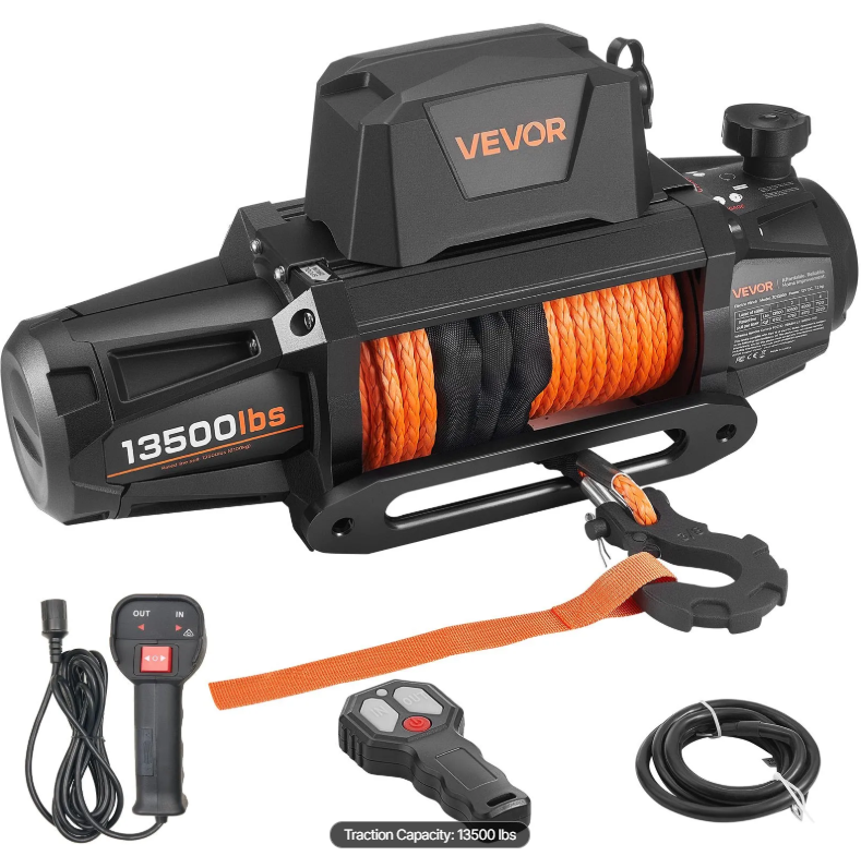 VEVOR Electric Winch – 6100 kg (13,450 lb), 12V Truck Winch with Synthetic Cable and Dual Remote Control