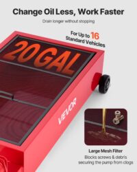 El carro de drenaje de aceite de perfil bajo VEVOR (75.7 L) es un robusto sistema de drenaje de aceite con ruedas, diseñado para cambios de aceite rápidos y limpios en autos, SUV, camiones y vehículos todo terreno. Su diseño discreto permite colocarlo fácilmente debajo de vehículos con poca distancia al suelo.