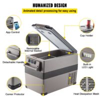 Le congélateur portable VEVOR est un mini-réfrigérateur/congélateur de 45 L, compact et performant, conçu pour une utilisation en voiture, en extérieur et à la maison. Alimenté en 12 V CC et CA, ce réfrigérateur portable offre une performance de refroidissement fiable avec une faible consommation d’énergie de 45 W.
