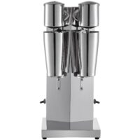 Macchina professionale per frappè a doppia testa da 180 W con corpo in acciaio inox e bicchieri da 800 ml per grandi volumi di servizio.