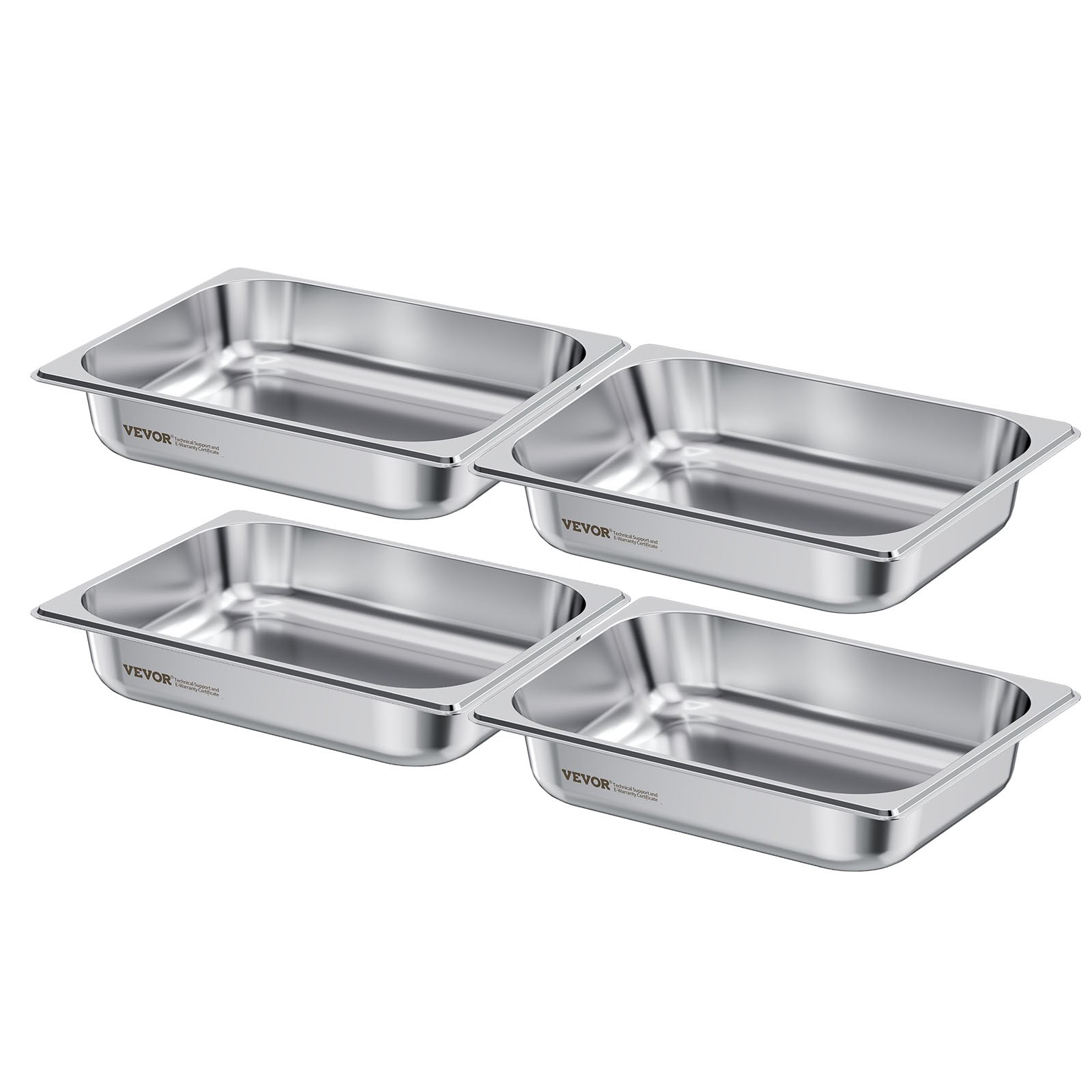Ensemble de bacs à vapeur VEVOR en acier inoxydable pour hôtels – Demi-format, profondeur de 6,35 cm (paquet de 4)