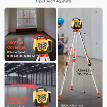 Kit de niveau laser rotatif VEVOR, faisceau rouge, portée de 300 m, autonivellement à 360°