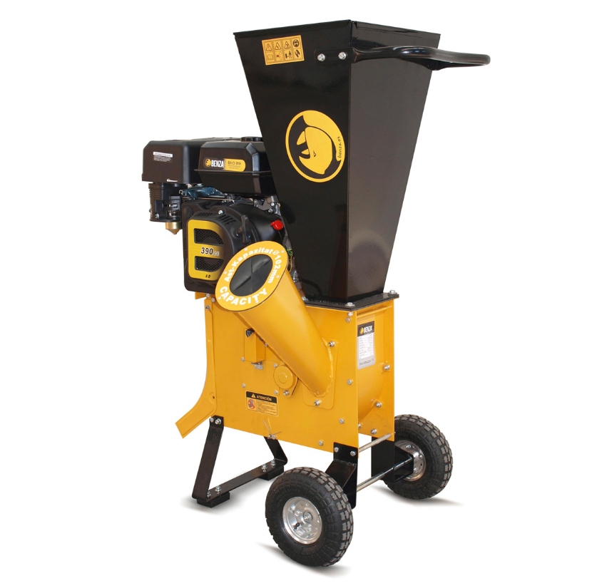 Déchiqueteuse thermique BENZA BIO 89 avec moteur 420 cc et capacité de broyage jusqu’à 102 mm. Broyeur puissant pour entretien professionnel et agricole.