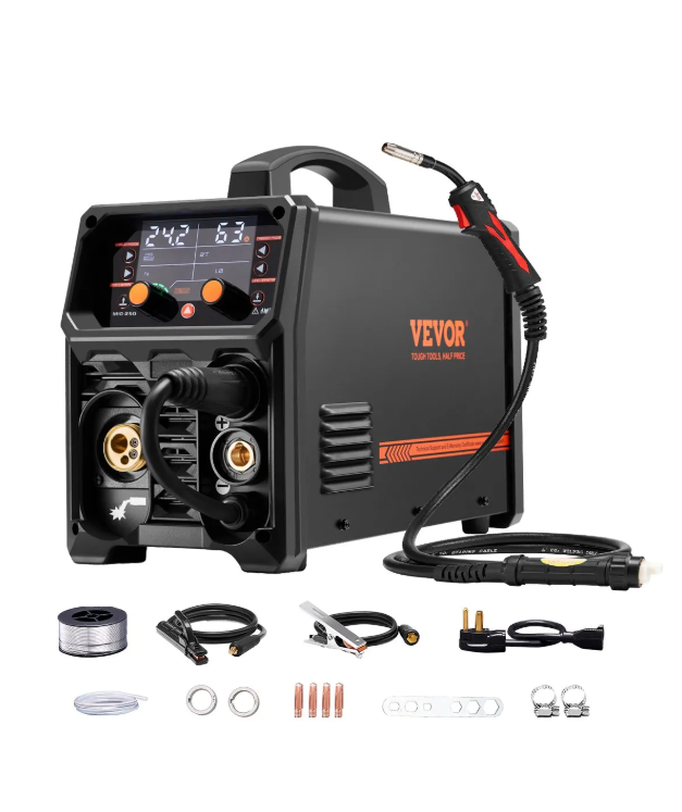 Poste à souder MIG VEVOR Pro – Machine de soudage synergique 5 en 1 250 A, onduleur IGBT, écran LCD